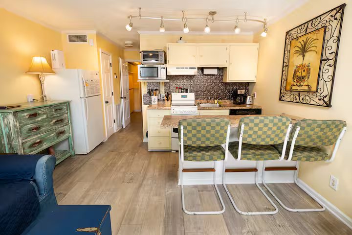 This property is a one and a half bedroom beachfront, facing the ocean with ocean views from the balcony and a private fishing pier. It is on the front beach boulevard just steps away from where all the shops and restaurants are located. This is the perfect location for an unforgettable Charleston experience!