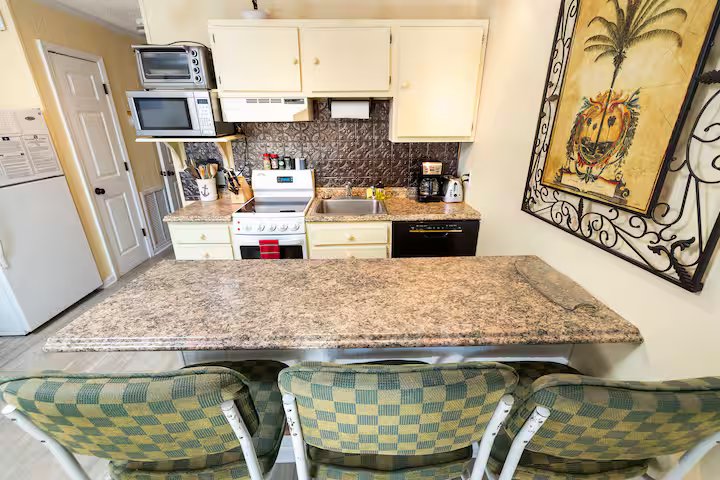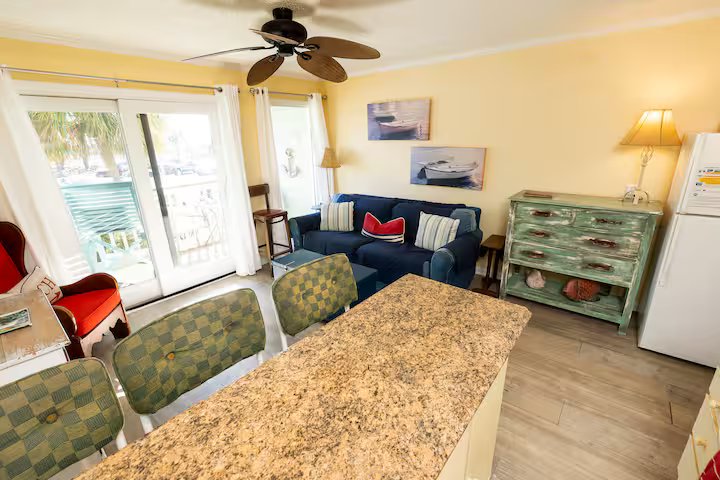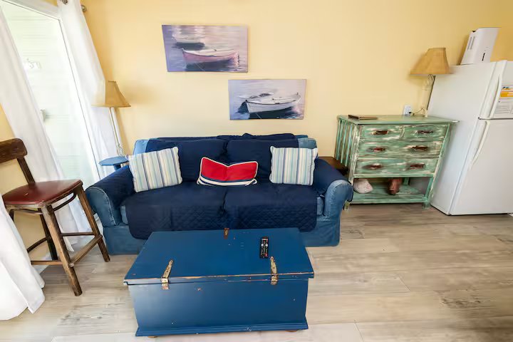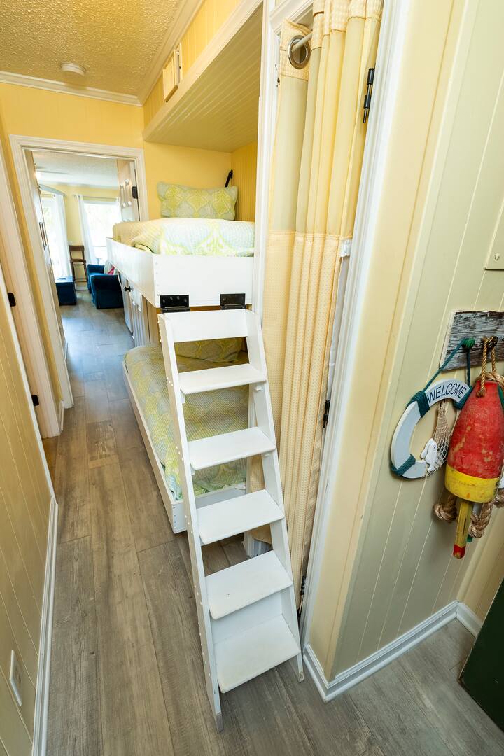In this space, you will sleep to the sound of ocean waves and a gentle ocean breeze in this Luxurious beachfront villa. The twin sized murphy bunks along with the hide-a-bed sofa and queen sized master bed create full sized adult sleeping arrangements comfortably for 6.