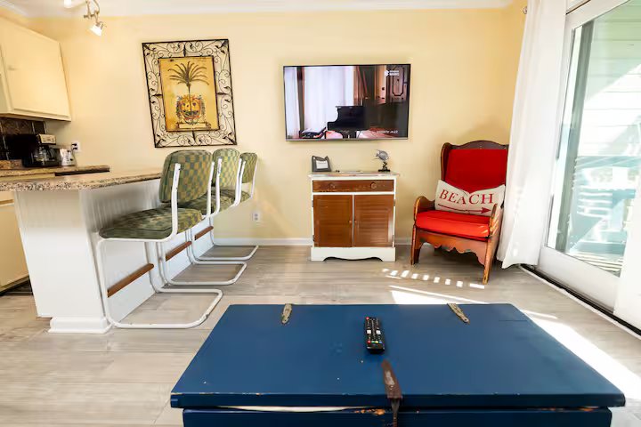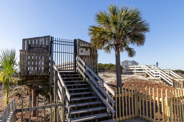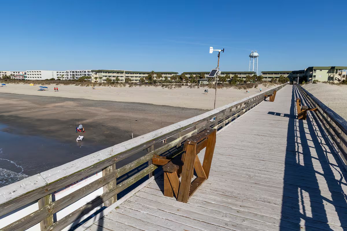If you don't feel like grilling out at the beach side barbecue pits, you are only a stone's throw from the Coda Del Pesce (Italian Seafood), Coconut Joe's, Luke & Ollies Pizzaria, Acme Lowcountry Table, The Sea Biscuit, the world famous Windjammer Beach Bar and Grill and the new Dingy beach bar and the NEW Papi's Taqueria mexican restaurant as well as the Front Beach shopping area. This condominium complex claims the only pier on the Front Beach strand and is private for your fishing or relaxation enjoyment.