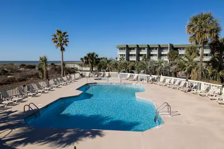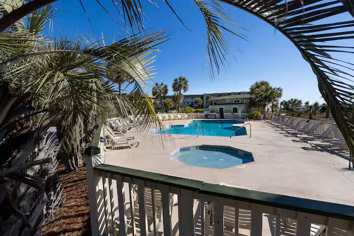 This villa is conveniently located on the popular Isle of Palms Front Beach strand and set just behind the saw-grass dune where, from your balcony you'll enjoy a clear view of the ocean and the tropical surroundings, while experiencing a special privacy, out of view from onlooking beach crowds. The first floor elevation of this villa (ten steps up) and its location in the end building with a special cut-through walkway, make it an even shorter distance to and from the beach and the pool make it especially desirable in a complex with no elevators.